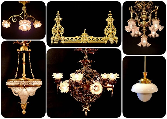 Gammel, fransk lysekrone, prismekrone, taklampe, Art Deco, ildhund, lampe