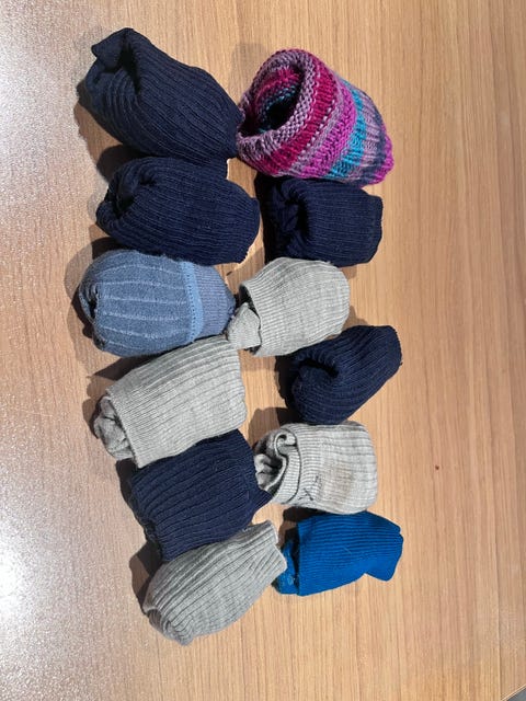 10 par ullsokker, 1 Lillelam strømpebukse og et par raggsokker str 23-26