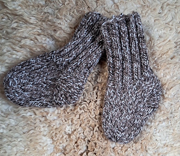 Hjemmestrikkede raggsokker til baby str. 2-6 mnd ca. 11 cm lange