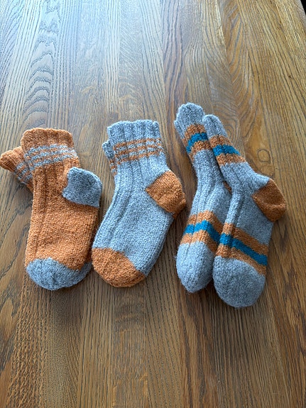 Hjemmestrikkede raggsokker og ullfrottesokk str. 13-15