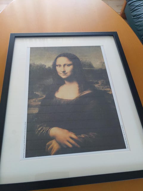 Mona Lisa m/ramme kjøpt på Louvre i Paris