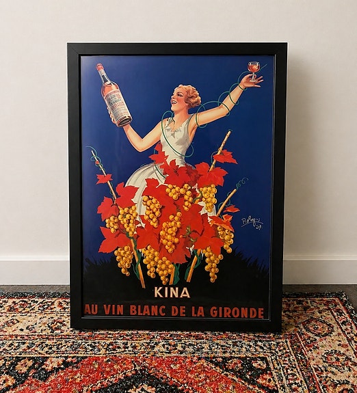 Vintage plakat i ramme – fransk vinmotiv (KINA / Gironde)