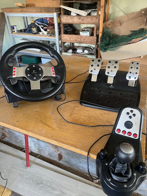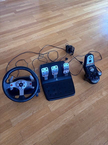 Logitech G25 ratt, pedaler og girspak