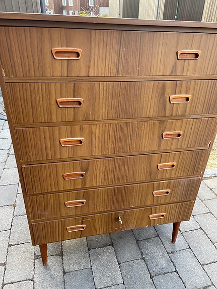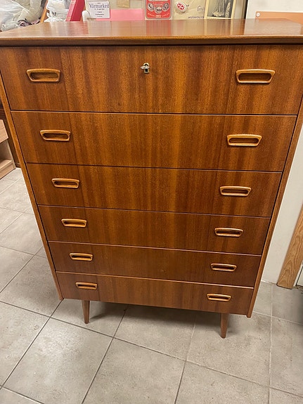 Retro teak 6 skuffers kommode, m/nøkkel. PEN - Hent eller få levert