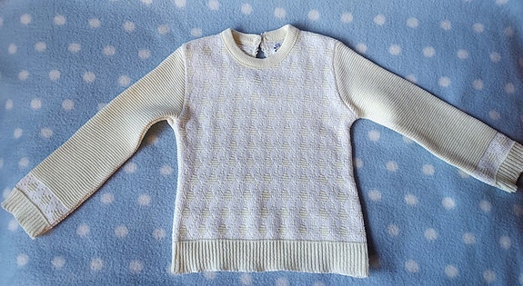 Vintage/Retro: Gul og hvit felin genser. Ca. str. 62-68- Smal form.