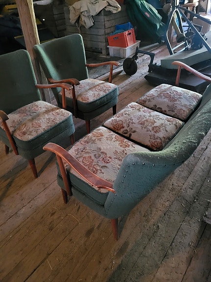Retro sofa og to stoler gis bort