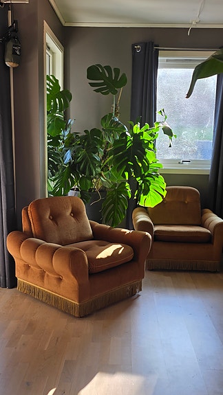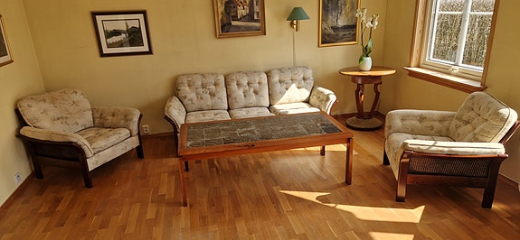 Sofa i tre med lenestol – retro stil og god komfort