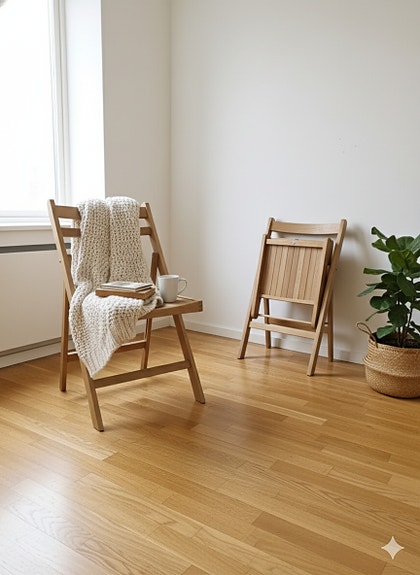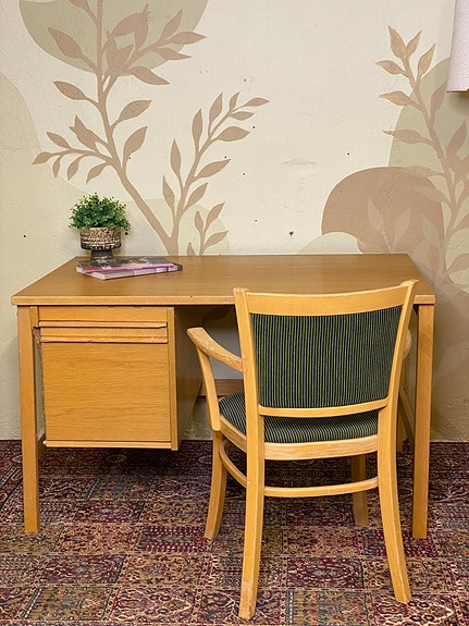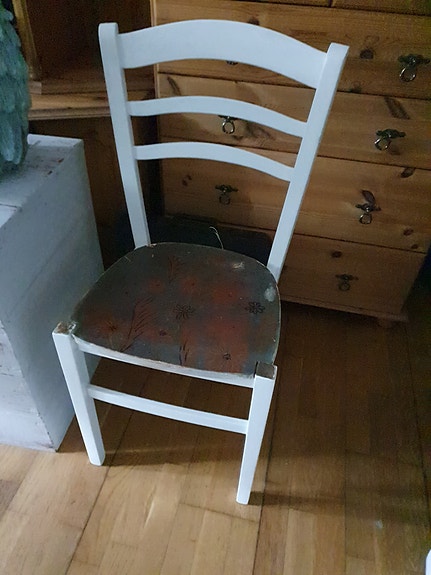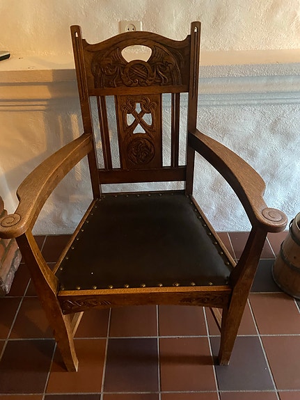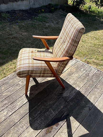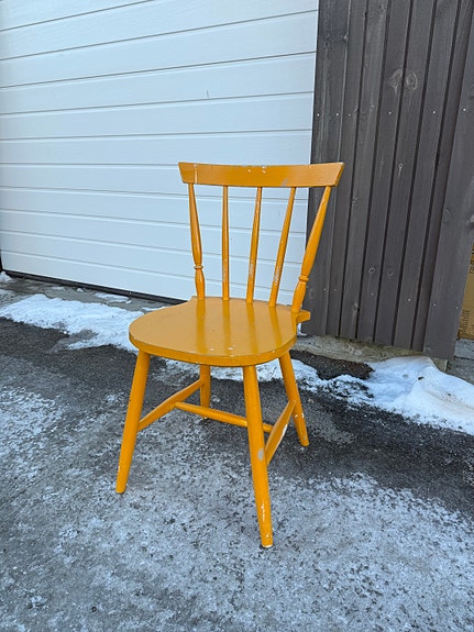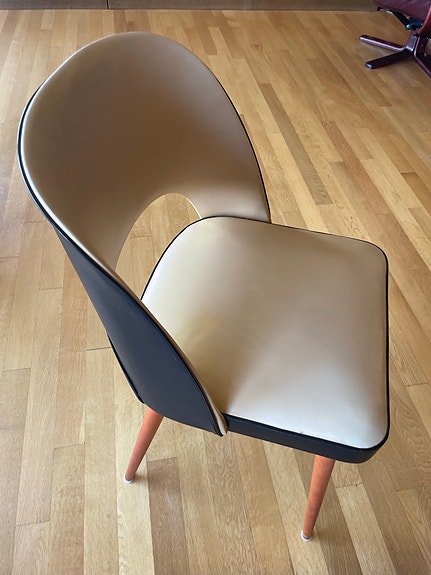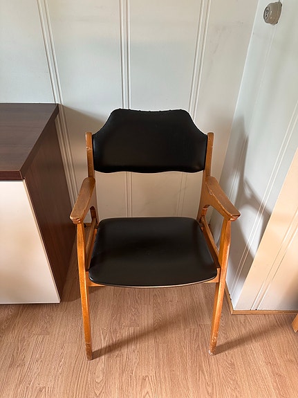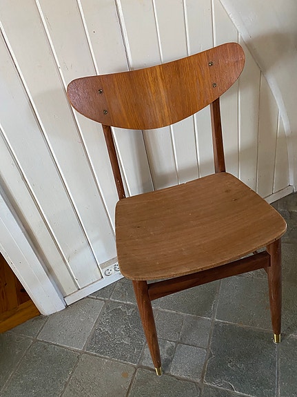 Retro treskjært stol fra Hardanger – 70-tallet, heltre og lær