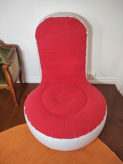 Retro funky oppblåsbar rød og hvit interiør stol ca 1988-1992 UBRUKT