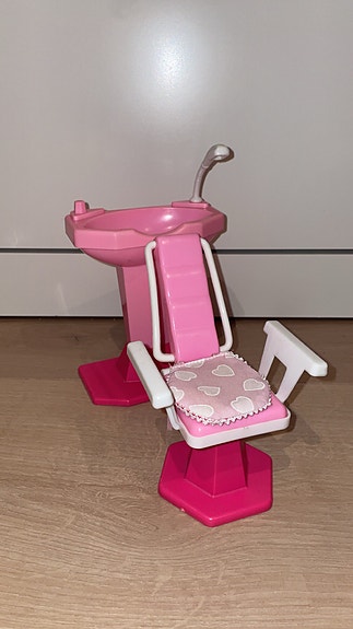 Lekesalong med vask og stol i rosa og hvit Barbie retro fra 80-tallet