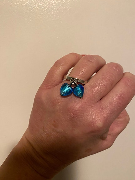 Ring sølv str 54, med turkise glasshjerter