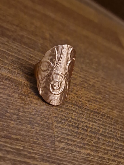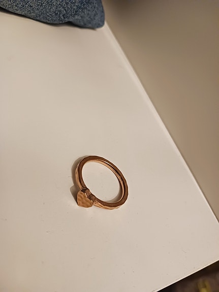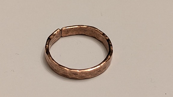 Rustikk kobber ring ca. str. 64, (2cm. i diam.)