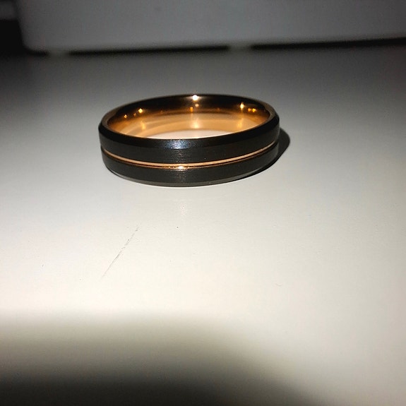 Tungsten og rosegull ring til herre