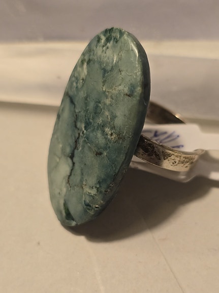 Ring i sølv 925 med grønn Moseagat. Regulerbar størrelse.