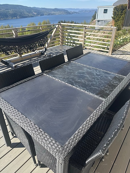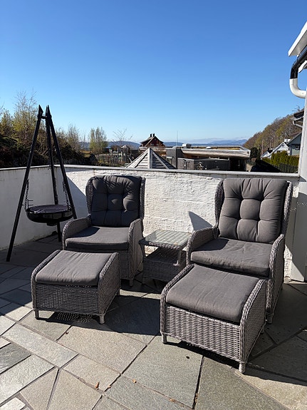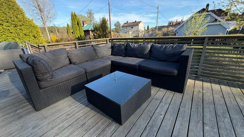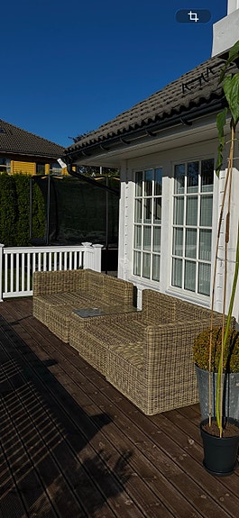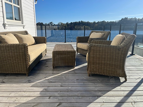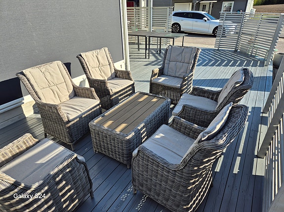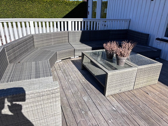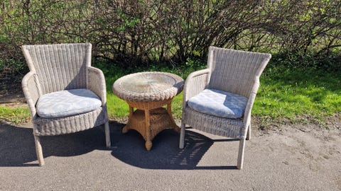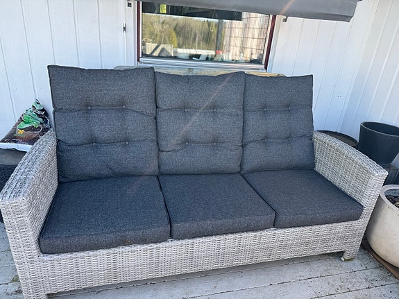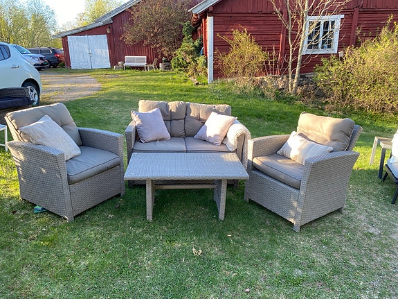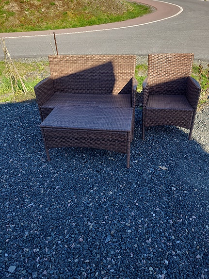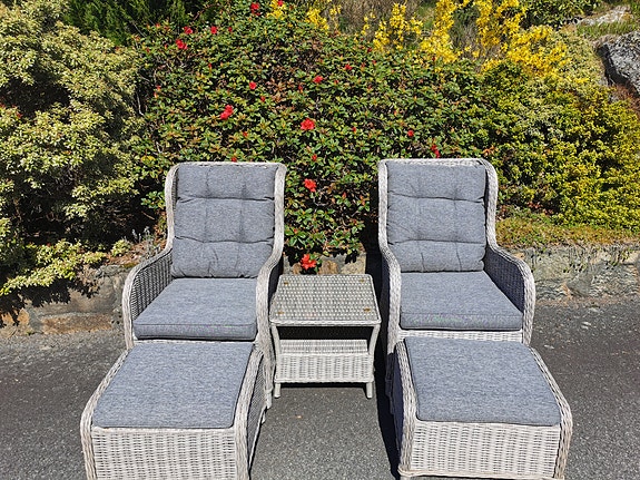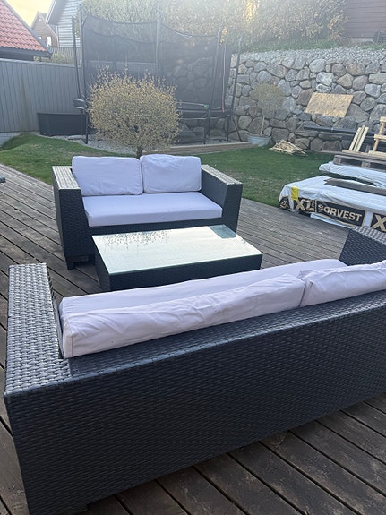 Hagemøbelsett med 2 sofaer og bord i rotting