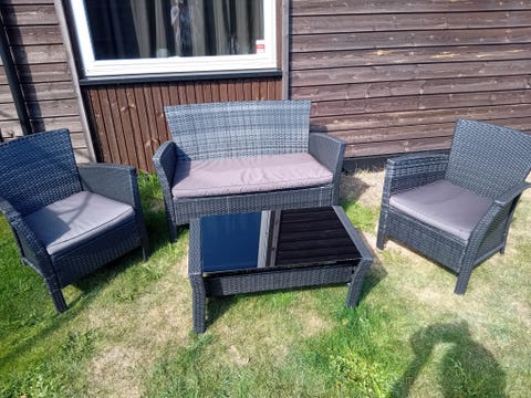 Utemøbelsett i rotting med puter
