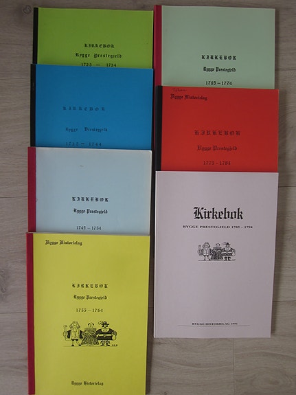 Kirkebok Rygge Prestegjeld 1725–1794 i 7 hefter (selges samlet)