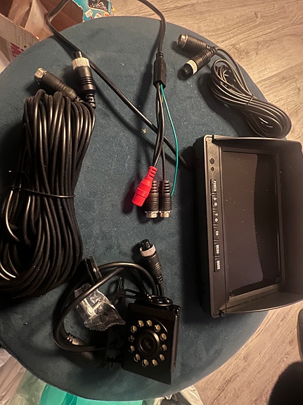 Rygge overvåkningskamera med skjerm og tilkoblingskabler + to kamera