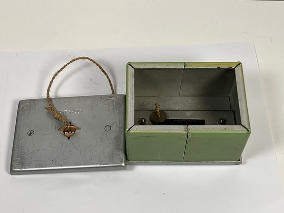 Vintage sparebøsse fra Rygge Sparebank (60 tallet) – med unik nøkkel!