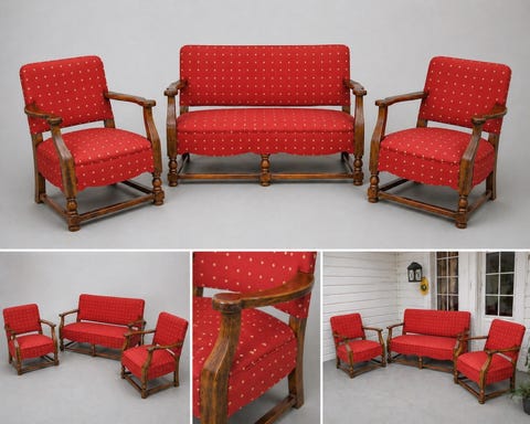 Klassisk norsk vintage salong (sofa + 2 stoler) – 50/60-tall, heltre