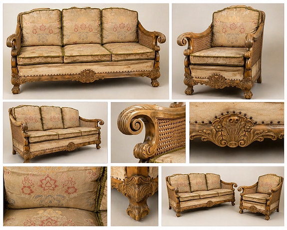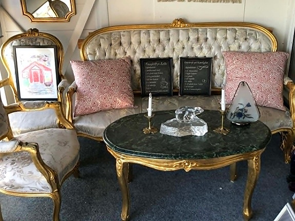 Unik komplett salong i særegen stil med bord og marmor steinplate .