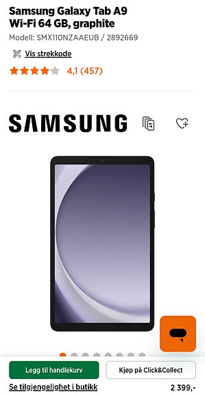 Samsung Galaxy Tab A9 Wi-Fi 64 GB, graphite med deksel Som ny