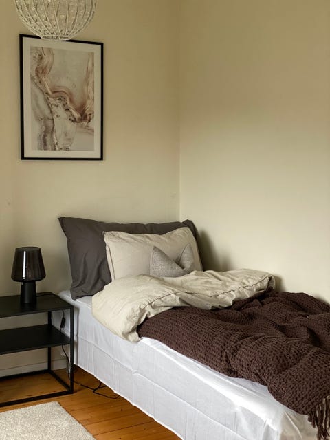 Barna seng med madrasse