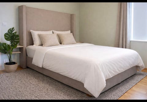Sengegavl beige stoff