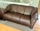 Pent brukt mørkebrun skinnsofa