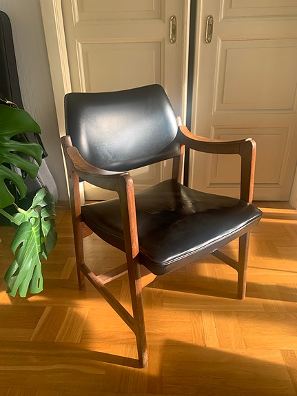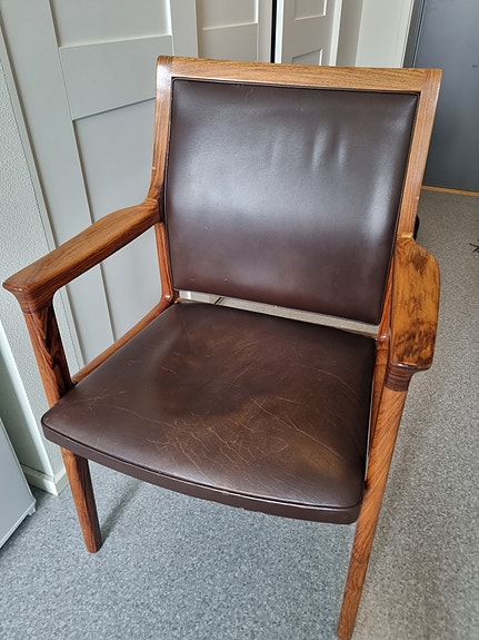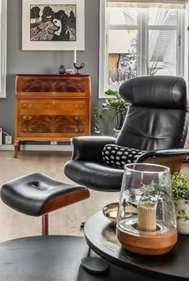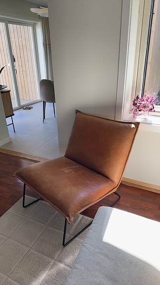Design skinnstol i nydelig kvalitet — med tilhørende fotskammel