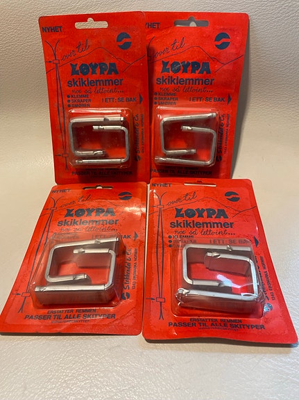 «Løypa skiklemmer» - 4 stk uåpnet eldre skiutstyr/ Stokkendal/skihistori