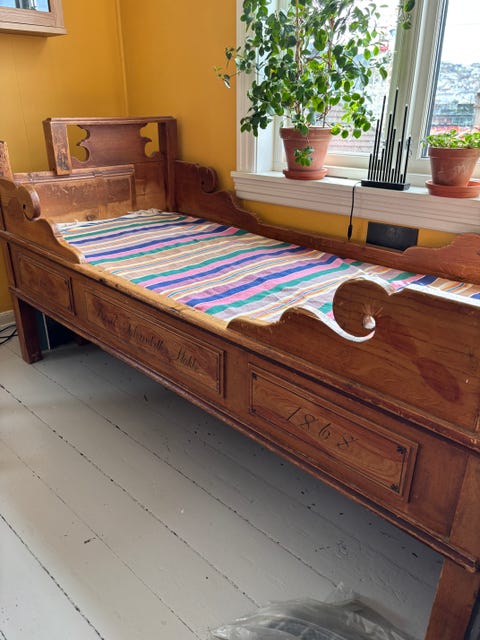 Tittel:Gammel skuvseng fra 1800-tallet – original, norsk bondeseng