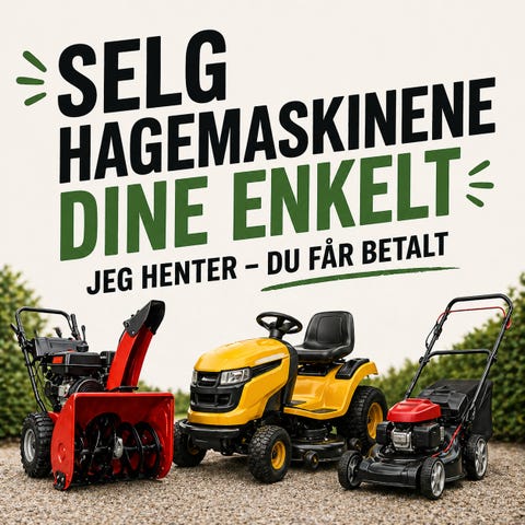 Kjøper hagemaskiner, sitteklipper gressklipper, snøfreser
