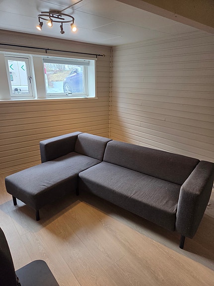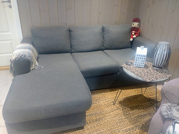 Sofa med sjeselong gis bort