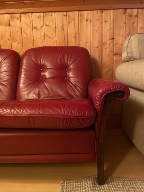 Vintage røde skinnsofaer