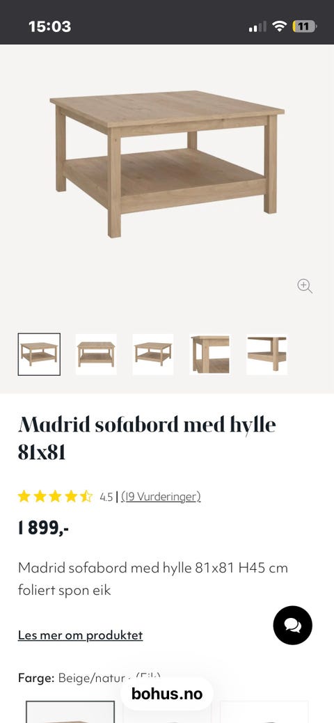 Sofabord selges billig