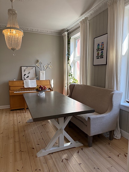 Spisesofa og lysekrone