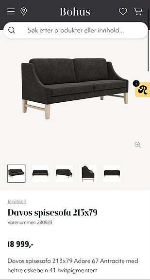 SpiseSofa 3-seter kjøpt på bohus i 2017