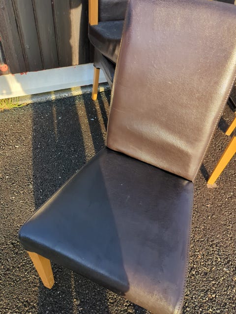 Pent brukte spisestoler i skinn