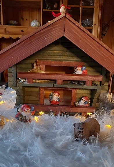 Laftet stabbur, håndlaget julehus