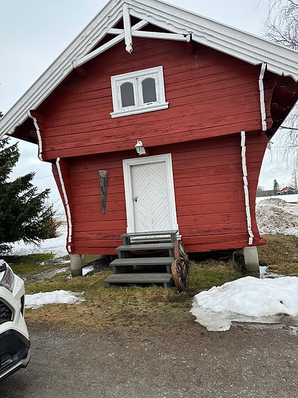 Laftet stabbur ca. 5m – klart for flytting