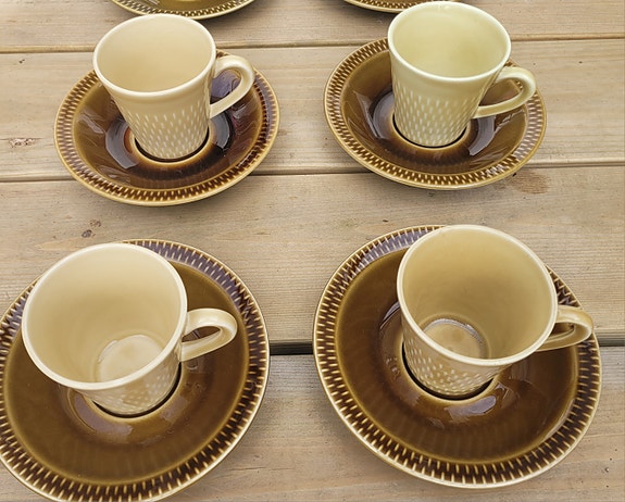 4 kaffekopper fra Stavanger Flint serviset Brunette selges samlet