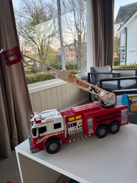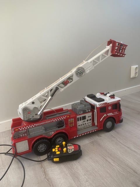 Stor Brannbil lekebil med stige rød med lys og lyd