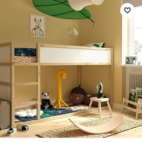 IKEA halvhøy barneseng med stige i tre og hvit - KURA