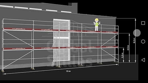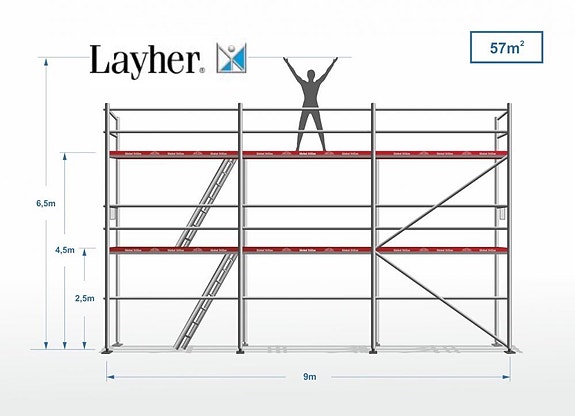 Layher stillas leies ut. Totalt 57 kvm.