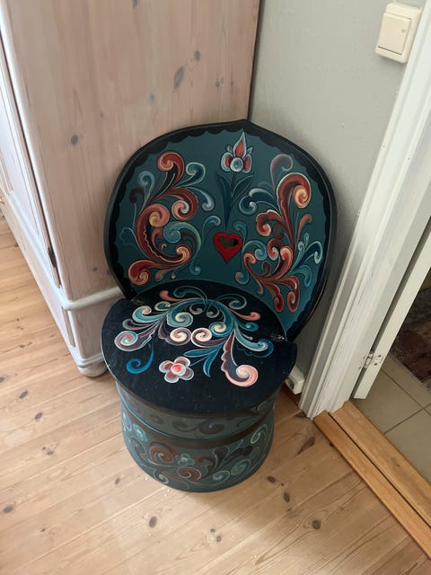 Rosemalt kiste og stol