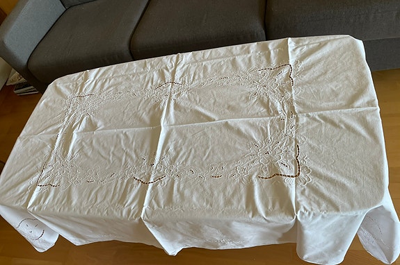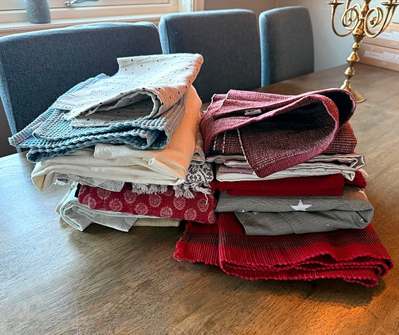 Masse stoff i form av duker / løpere, gardin, spisebrikker og stoff