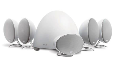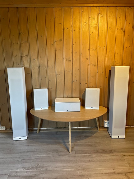KEF E305 MATT HVIT 5.1 høytalersystem med aktiv subwoofer på 250w