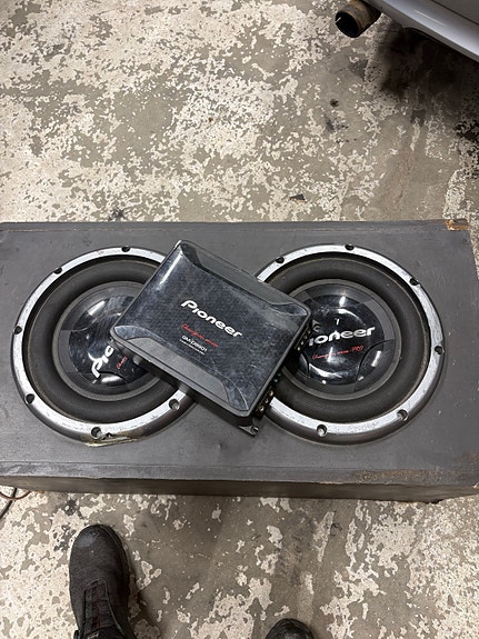 Pioneer 1000W bilforsterker og Hertz subwoofer i kasse