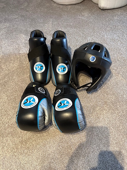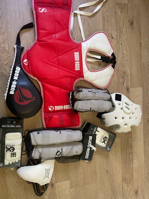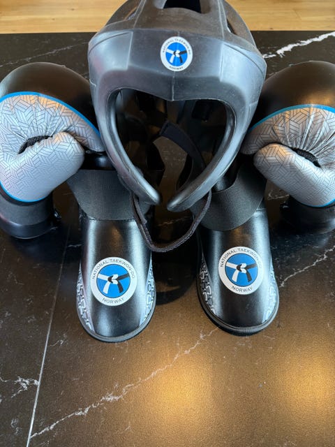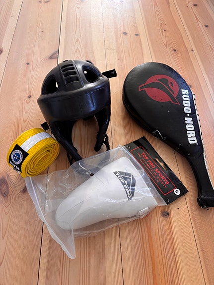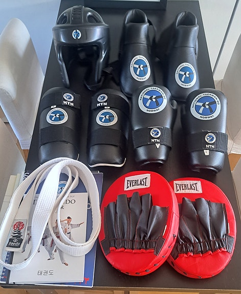 Uåpnet og nye Taekwondo utstyr. Vippser og hentes.